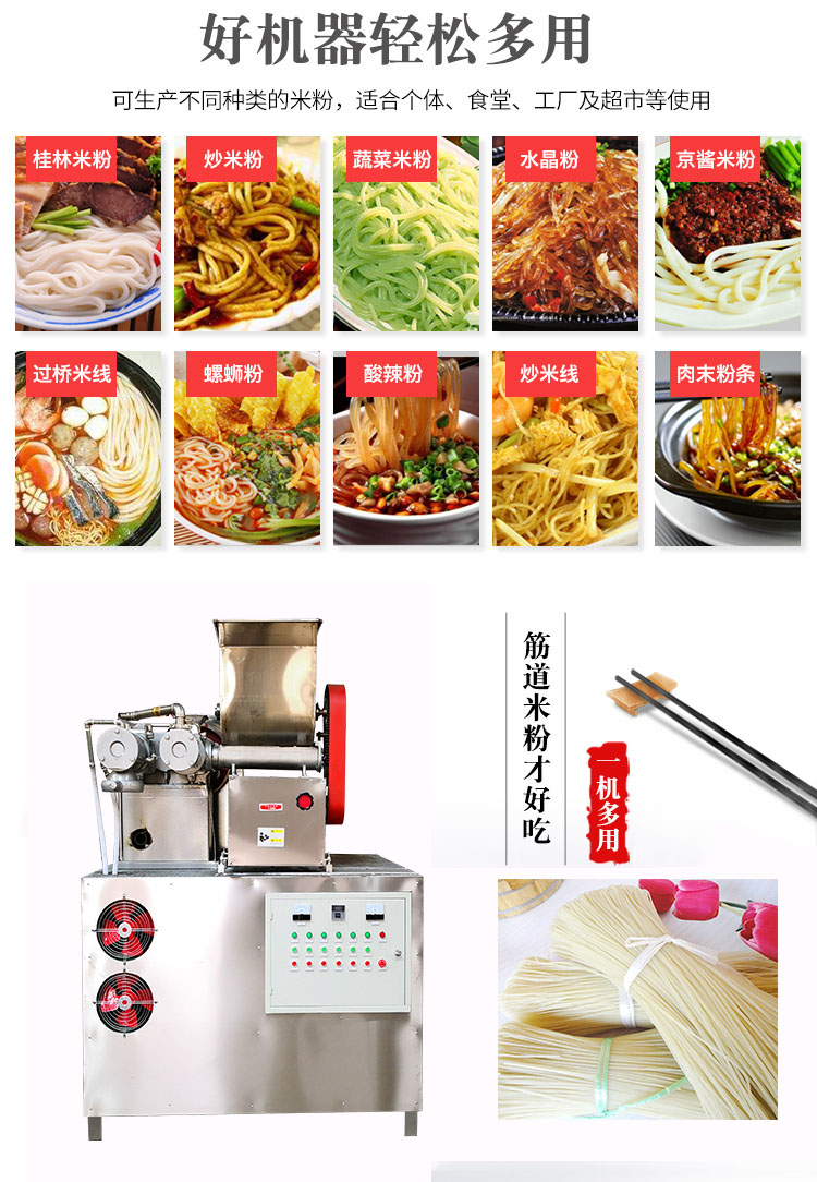 鴻睿全自動米粉機(jī)廠家是專業(yè)生產(chǎn)研發(fā)食品加工機(jī)械的產(chǎn)品米粉機(jī)廠家開辟新的道路,進(jìn)一步帶動經(jīng)濟(jì)的開展。你肯定會收獲不一樣的驚喜,今天你花了一倍的錢,我相信明天大家都可以收獲進(jìn)十倍的利潤,這就是投資是你的眼光,現(xiàn)在生產(chǎn)的好機(jī)器完全解決了傳統(tǒng)手工米粉效率低的等一些問題。