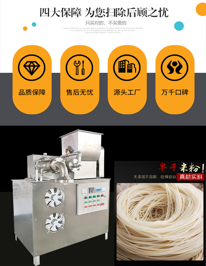 我們鴻睿廠家選用的部件都是買的不銹鋼材料制作而成的,因為這樣就解決了桂林米粉機的銹蝕問題,這樣我們生產(chǎn)出來的米粉就會更衛(wèi)生,吃起來也會放了心。對于大型米粉機這種產(chǎn)品來說,所有的設計都非常的合理,主要是因為這種機器的結構設計非常的精巧,米粉機在運行的過程當中相對來說也是比較流暢的。 很多客戶會對桂林米粉機的品牌和種類來做對比,那么在選擇適合自己機器的時候,我們是可以根據(jù)自身的需求來進行挑選。鴻睿米粉機性能更穩(wěn)定,桂林米粉機器改進型機頭,進品雙變頻,性能更穩(wěn)定。桂林米粉機采用了自動下料放面、加熱系統(tǒng),充分保護大米粉的筋道。